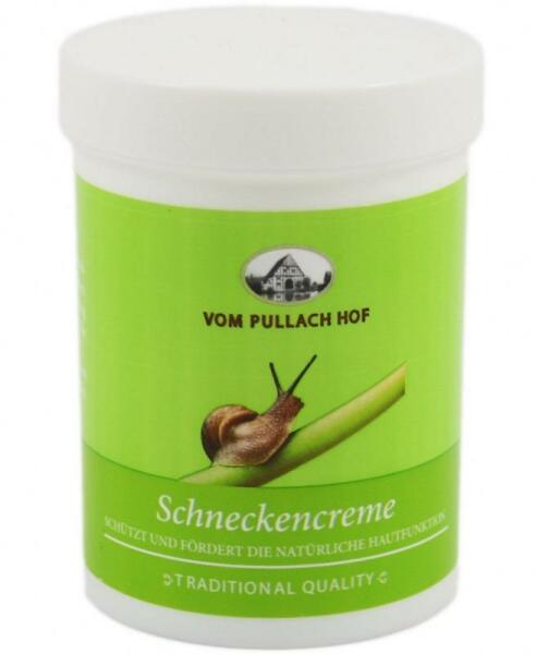 Pullach Hof csigakrém Változatos tulajdonságainak köszönhetően a Pullach Hof csigakrém elősegíti a bőr megújulását és megfiatalítását.  Regeneráló hatásának köszönhetően védelmet nyújt a bőrnek, gyógyító hatással van a bőrre, a hegekre, irritációkra, sebekre, kisebb égésekre, pattanásokra, sebhelyekre, foltokra és striákra. A csigakivonat kalcium karbonátban, alantoinban, enzimekben, A-, C- és E vitaminokban, elasztinben és kollagénben gazdag, amelyek stimulálják a bőr regenerációját és rugalmasságát. A gél hidratál és világosítja a bőrt. Látványosan gyógyítja a sebeket   Összetevők: Aqua, Cetearil-alkohol, Paraffinum Liquidum, Glicerin, Sztearinsav, Csigaszekréciós szűrő (Helix Aspersa Muller), Ceteareth-20, Ceteareth-25, Dimeticone, Glycosaminoglycans, Allantoin, Hidrolizált Soolagén, Karboxin HCI, Piridoxin-HCI, Hidroxidok, fenoxi-etanol, etil-hexilglicerin, dikálium-EDTA.